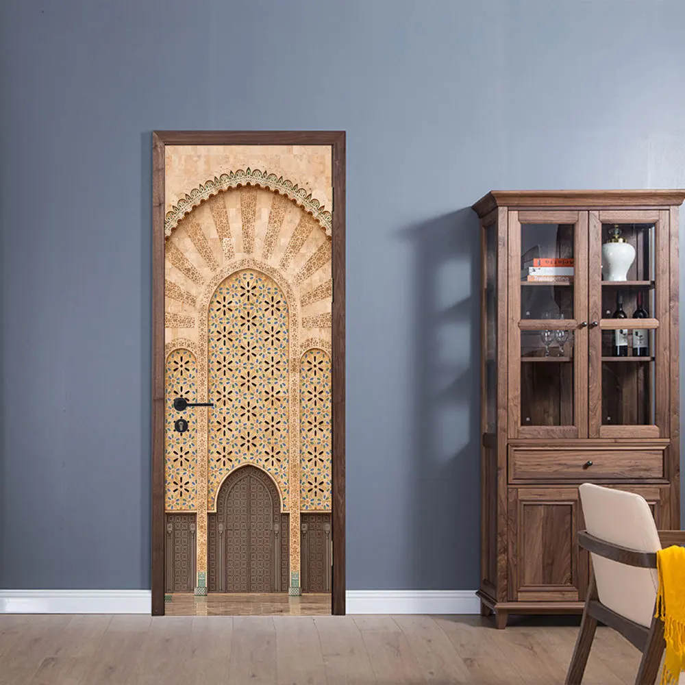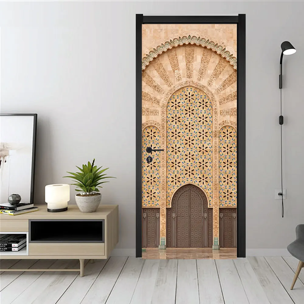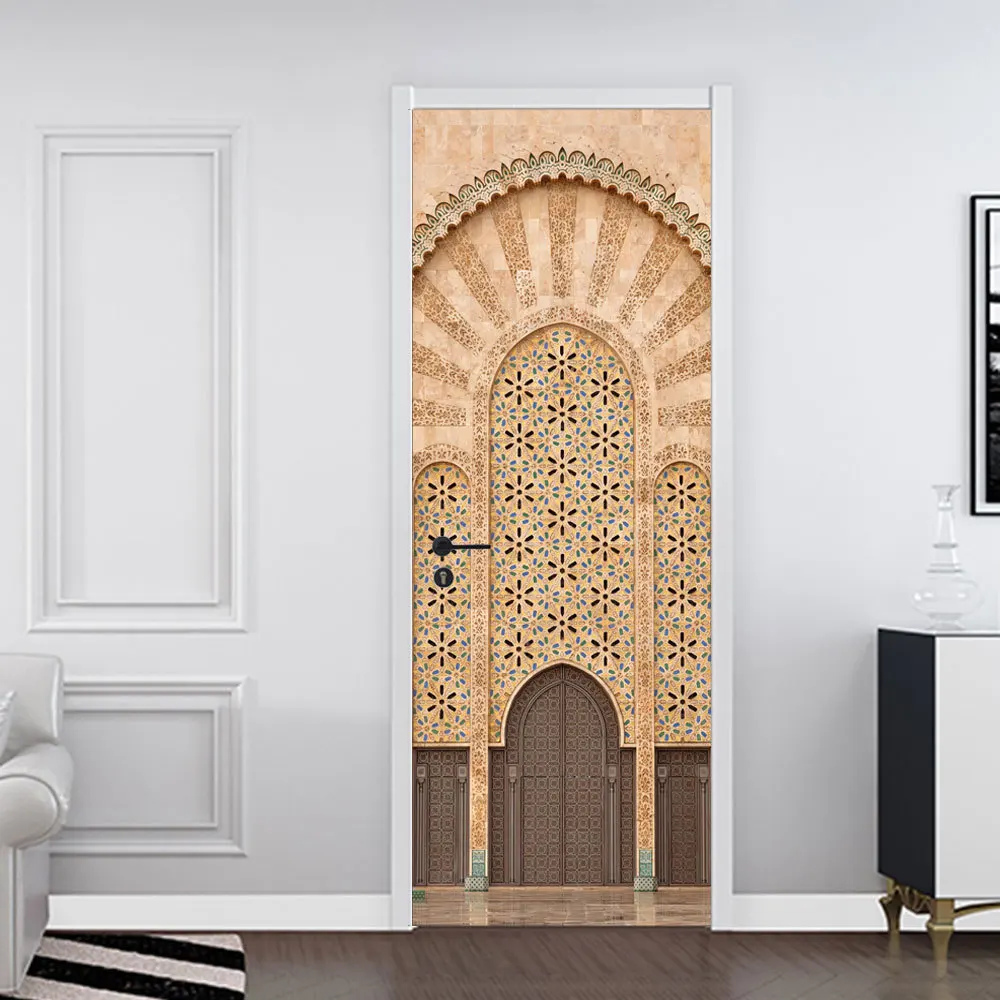 European Arch Mosque Religious Door Glass Window Creative Wooden Door Renovation Wall Stickers Drop