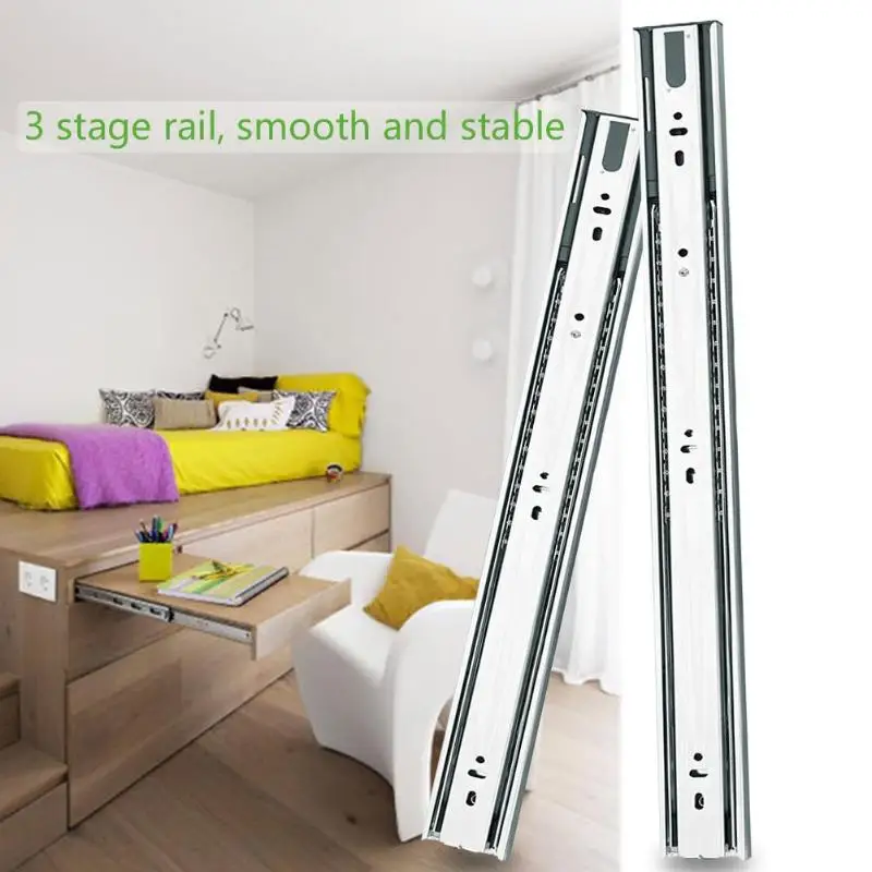 HIGH QUALITY 2pcs 3 Stage Smooth Mute Drawer Track Slide Guides Rail for Furniture Fittings Stainless Steel Kitc