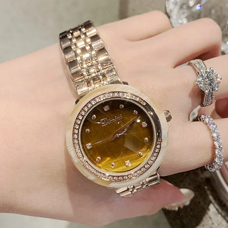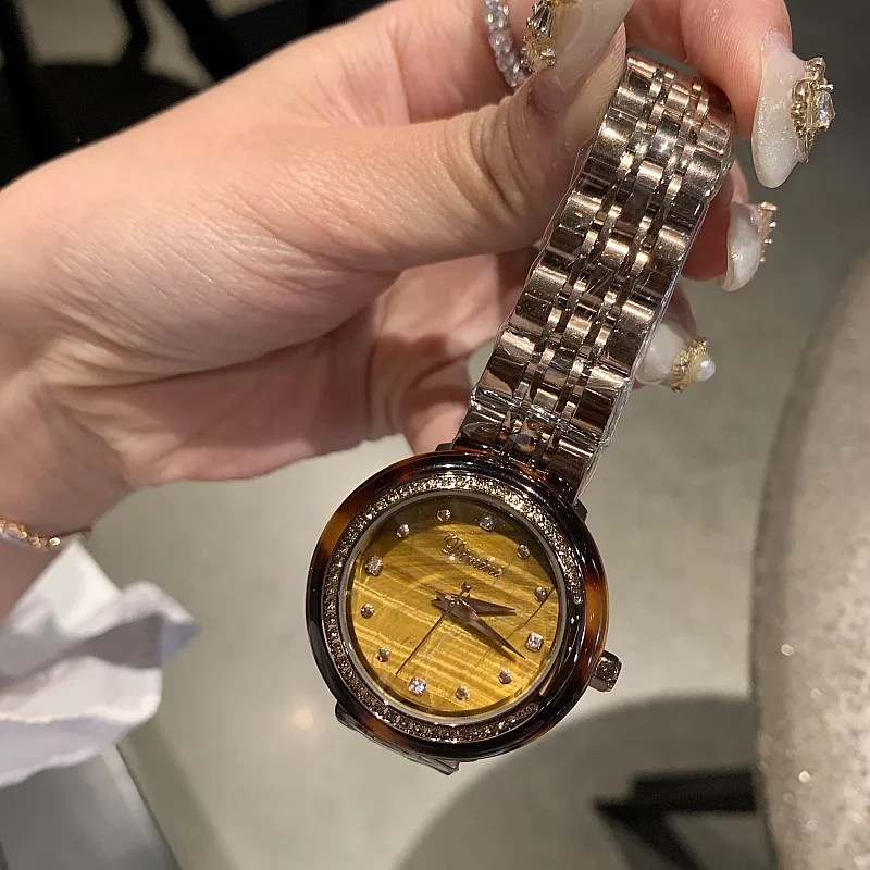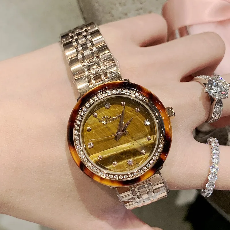 HIGH QUALITY Luxury Women's Watches Amber dial Rose Gold Watches Women Fashion Rhinestone Full Steel Ladies Meta