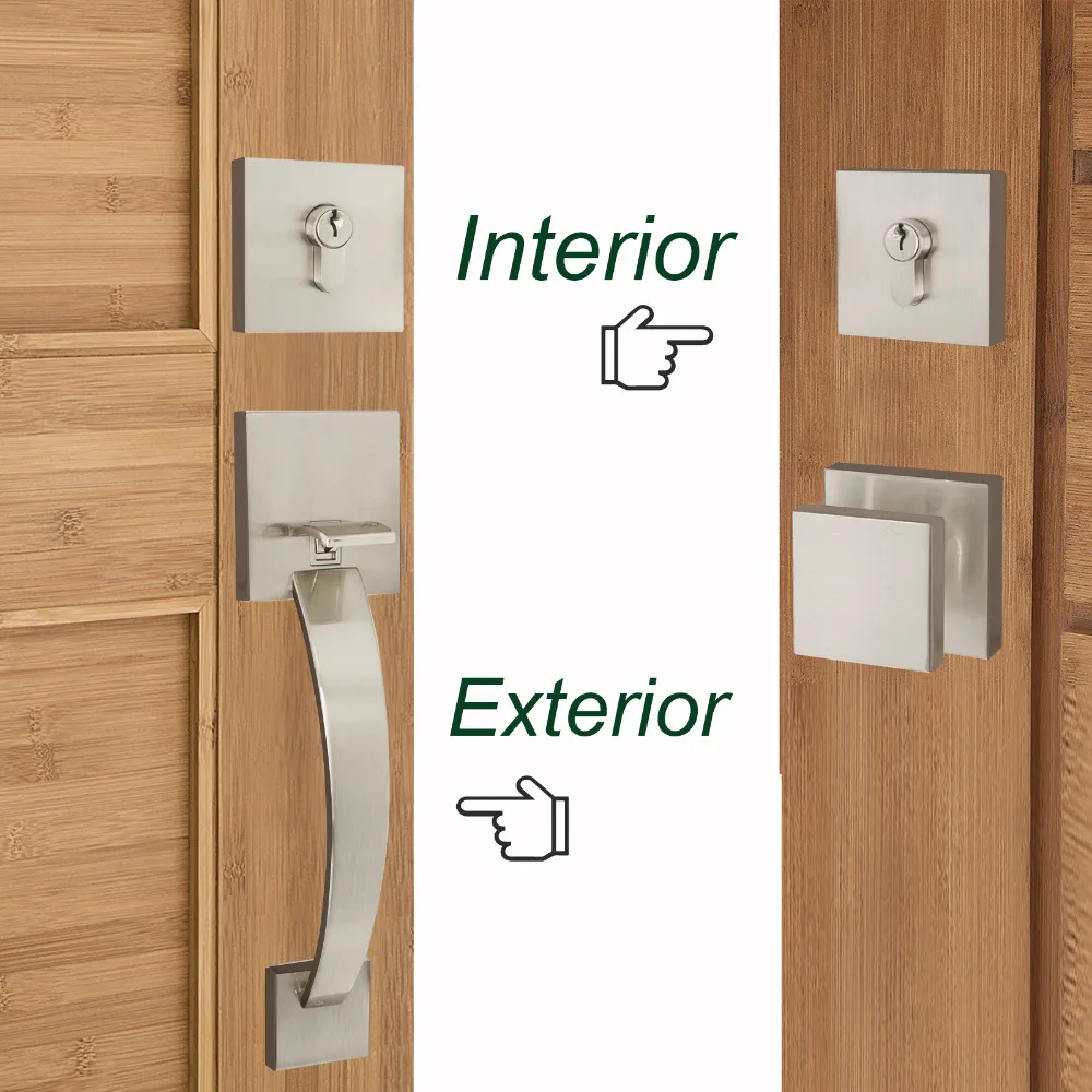 Probrico Interior/Exterior Grip Handles Double Cylinder Locks Modern Square panel handleset Anti-th