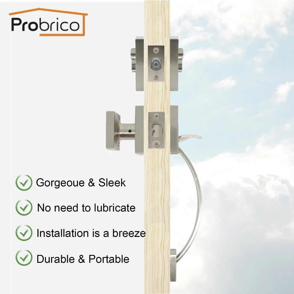 Review Probrico Interior/Exterior Grip Handles Double Cylinder Locks Modern Square panel handleset Anti-th